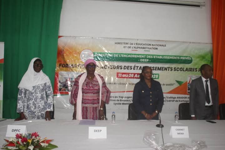 Ces auditeurs, composés de directeurs d’écoles, directeurs des études, éducateurs et enseignants du préscolaire, primaire et secondaire, ont été formés sur la gestion des apprentissages, la discipline scolaire, les relations avec les parents et d’autres défis liés au fonctionnement des établissements privés. Représentant la ministre de l’Éducation nationale et de l’Alphabétisation, le Pr Mariatou Koné, la conseillère technique Marie Christine Fatoumata Allou a salué les efforts consentis. « Nous osons espérer que ce temps d’échange, même court, aura permis à chacun de mieux appréhender les missions et obligations dont vous devez désormais vous approprier », a-t-elle déclaré, avant d’exhorter les participants à poursuivre leur auto-formation. « Nous sommes à l’ère du numérique. Vous avez à disposition des plateformes de formation et le site de la DPFC qui regorgent de ressources pédagogiques utiles », a-t-elle ajouté. De son côté, la Directrice de l’Encadrement des Établissements Privés (DEEP), Touré Diarra Mariam, a rappelé que depuis 2011, près de 52 976 acteurs ont déjà été formés dans ce cadre. Pour l’édition 2025, elle a précisé que les auditeurs étaient répartis sur huit sites, dont quatre à Abidjan (3 688 participants) et quatre à l’intérieur du pays (2 673 participants), avec un taux de réussite de 97%. « L’innovation depuis la session 2023, c’est l’évaluation au terme de la formation. Tout candidat ayant obtenu une note inférieure à 10/20 n’aura pas son nom sur la décision d’autorisation d’exercer », a-t-elle insisté, avertissant également sur les cas de faux diplômes. La Directrice de la pédagogie et de la formation continue, Nuridine Doukouré, a pour sa part exprimé sa gratitude à la ministre pour avoir permis la tenue de ces sessions, tout en encourageant les auditeurs à « toujours rechercher la connaissance ». Au total, ce programme de renforcement des capacités, considéré comme un pilier de la professionnalisation du privé scolaire, ambitionne de consolider la qualité de l’enseignement en Côte d’Ivoire.