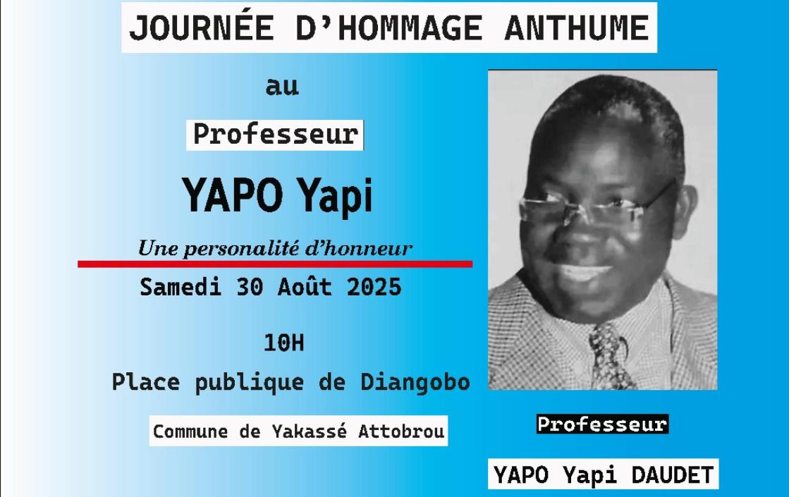 Le village de Diangobo s’apprête à vibrer au rythme d’une cérémonie exceptionnelle le samedi 30 août 2025. À l’initiative de plusieurs grandes familles et d’un comité ad’hoc, une journée d’hommage anthume sera organisée en l’honneur du Professeur YAPO Yapi Daudet, figure éminente du savoir et du service communautaire. Cet événement unique en son genre vise à célébrer un homme dont l’engagement pour l’éducation, la culture et la cohésion sociale a marqué plusieurs générations.