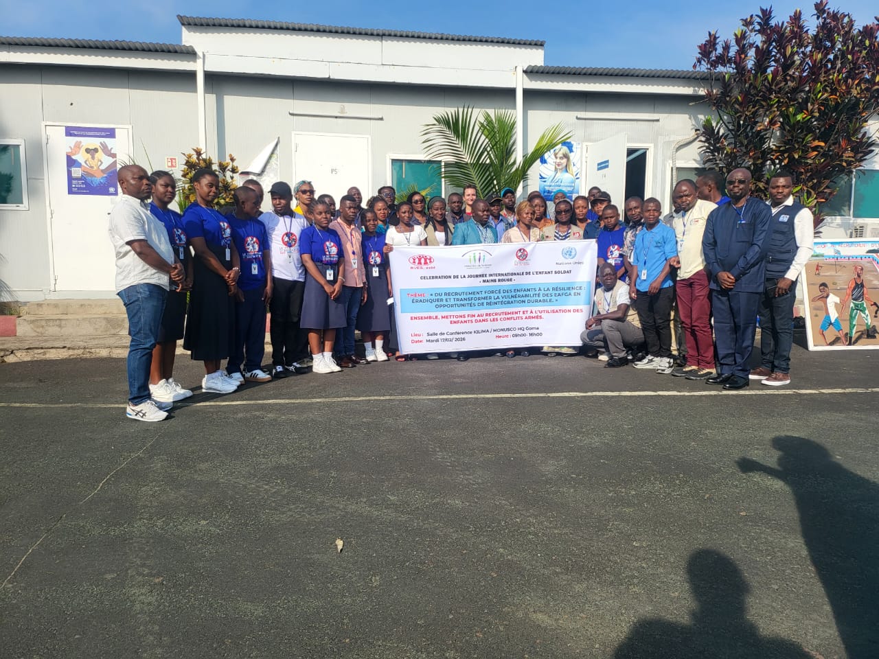 Organisée par le Réseau des organisations de la société civile contre le recrutement des enfants soldats par les groupes armés (ROSCCRESGA), en collaboration avec la section Protection de l’enfant de la MONUSCO/Goma et le BVES, cette journée célébrait la Journée internationale de l’enfant soldat dans le cadre de la campagne « Main Rouge ». Le thème retenu cette année était : « Du recrutement forcé des enfants à la résilience : éradiquer et transformer la vulnérabilité des EAFGA en opportunité de réintégration durable ». Cette date a été choisie pour coïncider avec l’anniversaire de l’adoption en 2002 du Protocole facultatif à la Convention relative aux droits de l’enfant.